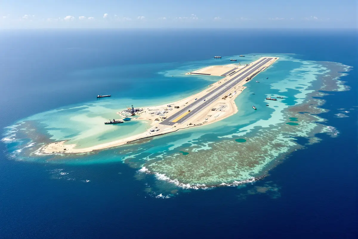 In the heart of the South China Sea, what used to be little more than submerged coral reefs are now hubs of strategic infrastructure. Where the waves once ruled, you’ll now find airstrips stretching 3 kilometers long, radar domes, missile platforms, and harbor facilities. This transformation all begins with sand.